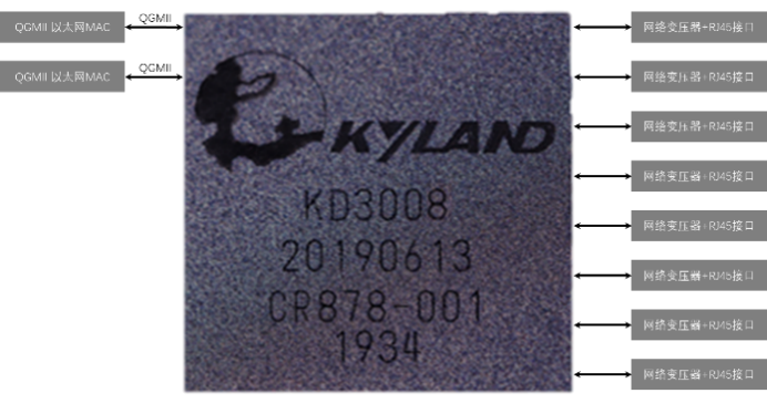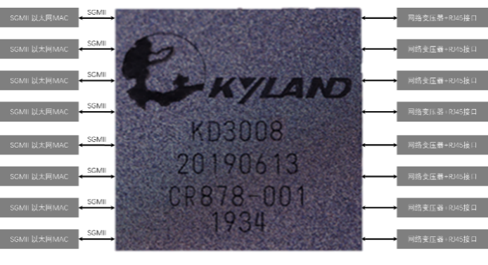 KD3008 GPHY芯片是高集成度自主可控芯片產品。芯片對外提供8個SGMII接口和2個QSGMII接口,支持10BASE-T、100BASE-TX、100BASE-FX和1000BASE-T業務。MAC接口支持SGMII應用模式、QSGMII應用模式。以太網接口支持自動協商、半雙工和全雙工、自動極性校準。支持雙層內部環回測試,簡化系統級調測。