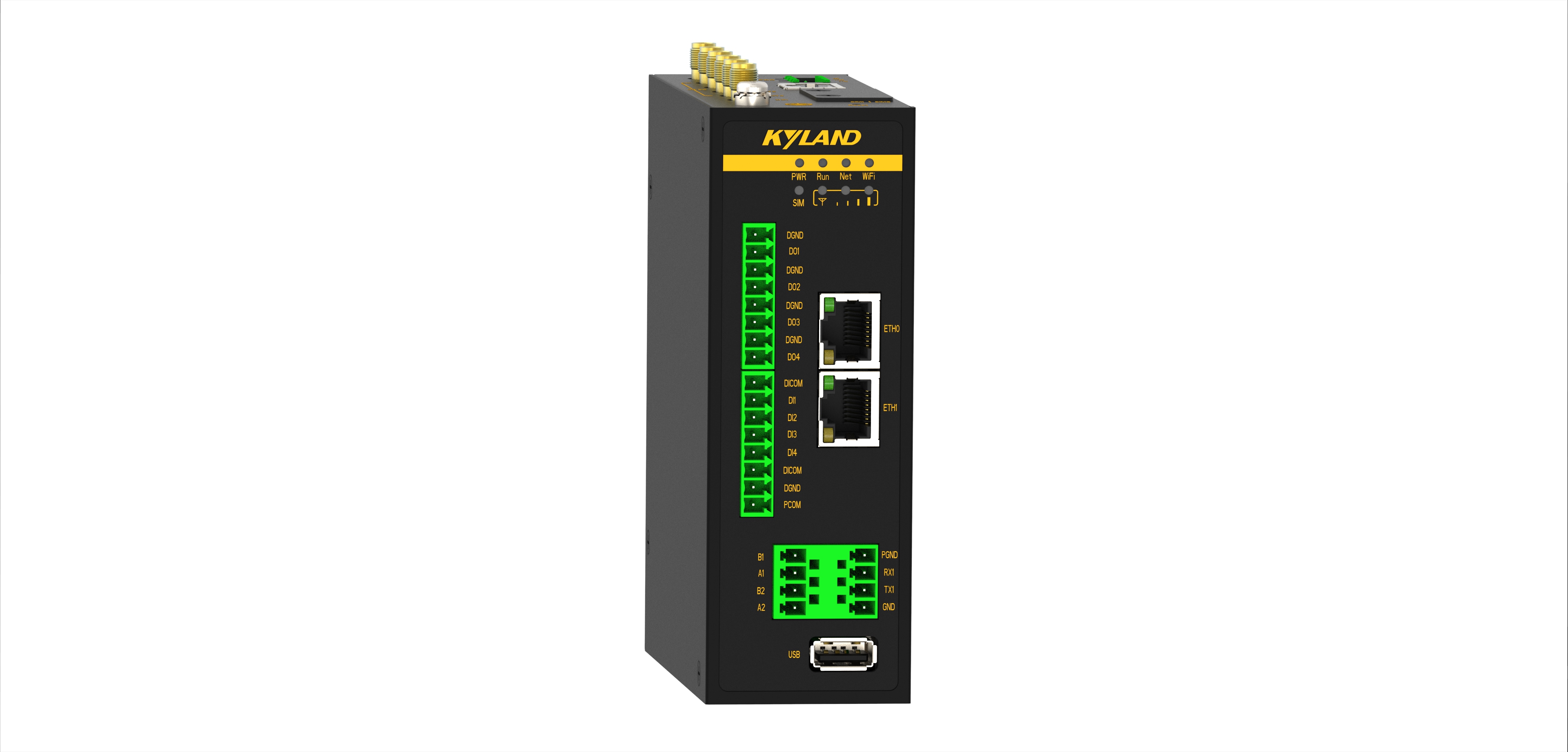 4路百兆電口,2路RS485,1路RS232,支持5G,支持2.4G WIFI,4路DI,4路DO,9-36VDC輸入 |