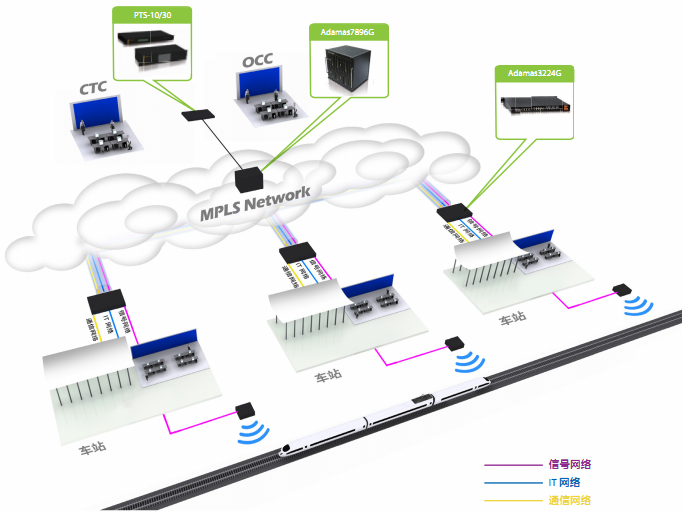 傳統鐵路通信骨干網通過SONET/SDH或者純以太網承載各種數據業務,如PIS/PA,BAS,FAS,CCTV,IT,ISCS,視頻會議以及數據通信,通過獨立的信號網絡承載CBTC、CTCS等信號控制信息。如今隨著技術發展,信號業務和數據業務融合已經成為越來越普遍的應用模式。
