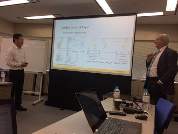 2019年1月14日,在東京的MT9國際工作組會議上,介紹了我司首創的高性能總線標準提案(以下簡稱AUTBUS),該提案得到了MT9主席Winkel先生和與會專家的高度評價和認可。Winkel主席聽取了與我司與會代表陳凡民先生講解和答疑后,立即為AUTBUS分配了標準號:IEC61158- Type 28(類型編號)、IEC61784- CP 22(通信配置規范);下圖為東京MT9會議的現場。