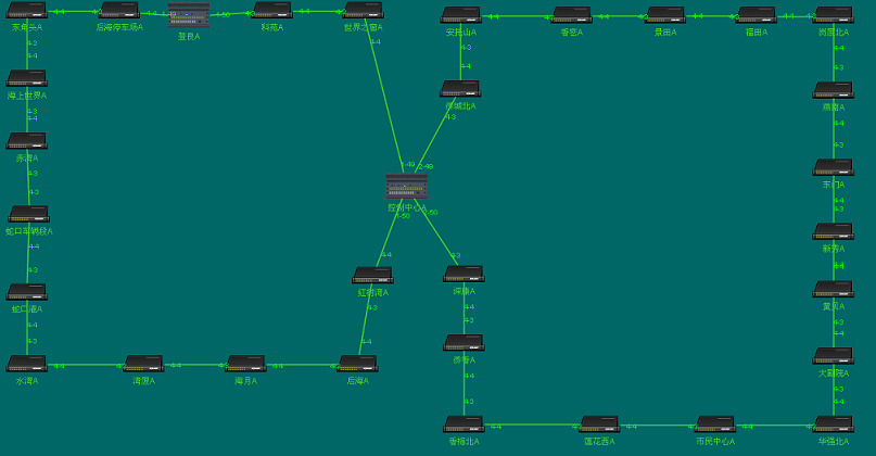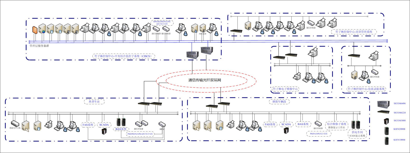 2號(hào)線運(yùn)營(yíng)中的線路全線設(shè)有29座車(chē)站、1個(gè)控制中心、1個(gè)車(chē)輛段,1個(gè)停車(chē)場(chǎng)和2個(gè)主變電所。整體監(jiān)控系統(tǒng)分為中央級(jí)和車(chē)站級(jí),中央級(jí)(控制中心)采用東土科技SICOM6496萬(wàn)兆級(jí)三層路由工業(yè)以太網(wǎng)交換機(jī),車(chē)站級(jí)(含29座車(chē)站、1處車(chē)輛段、1處停車(chē)場(chǎng))采用SICOM6424SM千兆三層路由工業(yè)以太網(wǎng)交換機(jī)。這些設(shè)備在各個(gè)網(wǎng)絡(luò)節(jié)點(diǎn)均以兩臺(tái)結(jié)構(gòu)分別接入通信光纖,組雙冗余環(huán)網(wǎng)(A網(wǎng)和B網(wǎng)),實(shí)現(xiàn)互為冗余的無(wú)擾動(dòng)切換。