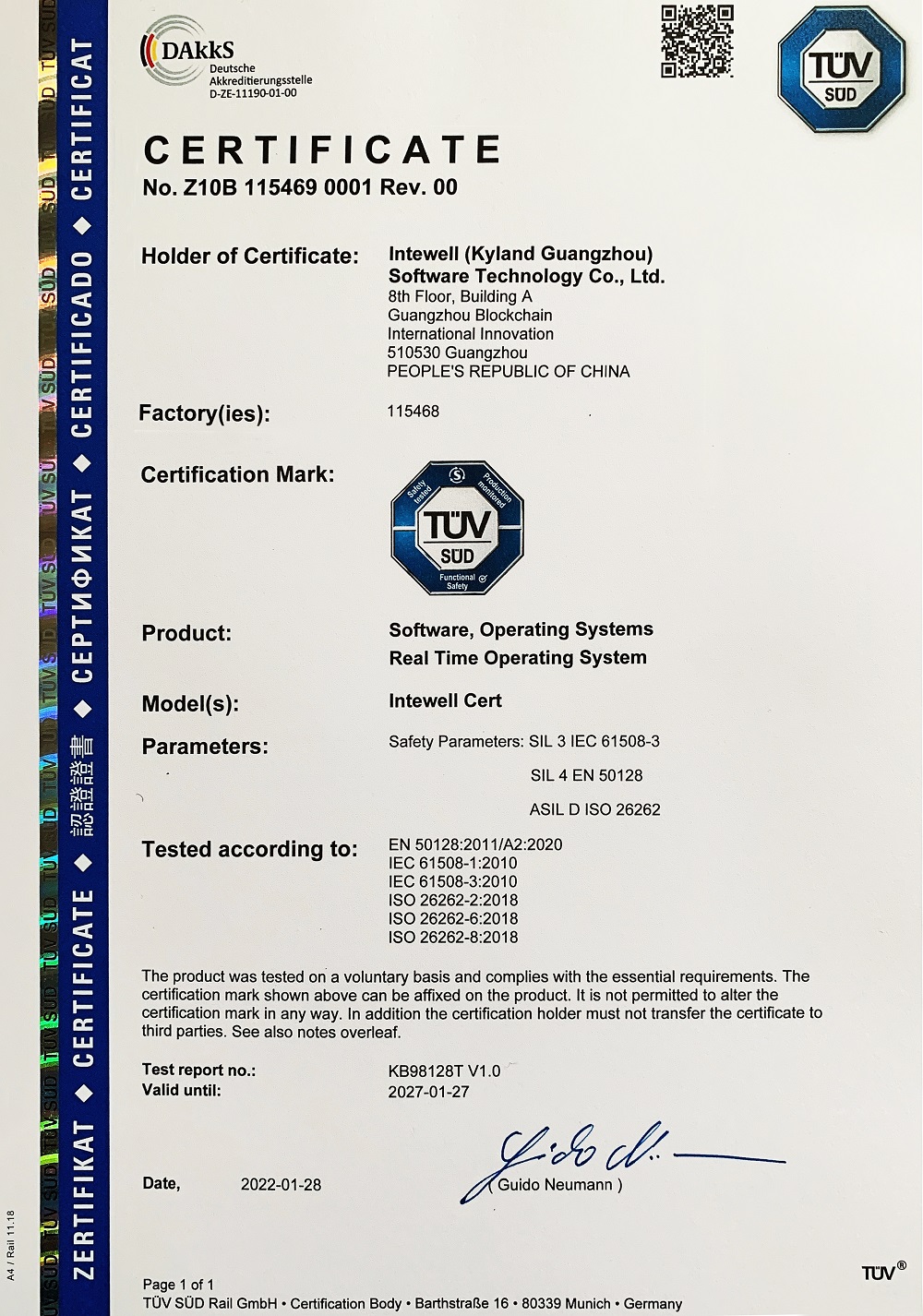 近日, Intewell工業(yè)級網(wǎng)絡操作系統(tǒng)一舉通過了全球功能安全領域開創(chuàng)者——南德意志集團的最高安全完整性等級的功能安全認證。Intewell成為了國內(nèi)第一個在工業(yè)控制、軌道交通、汽車電子三個重要行業(yè)獲得TÜV南德功能安全認證的操作系統(tǒng)品牌。