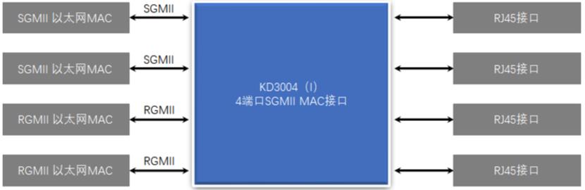 在SGMII應用模式下,KD3004是一個四端口SGMII MAC電口收發器。
