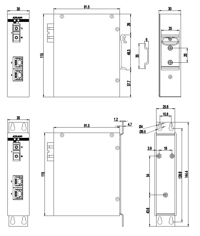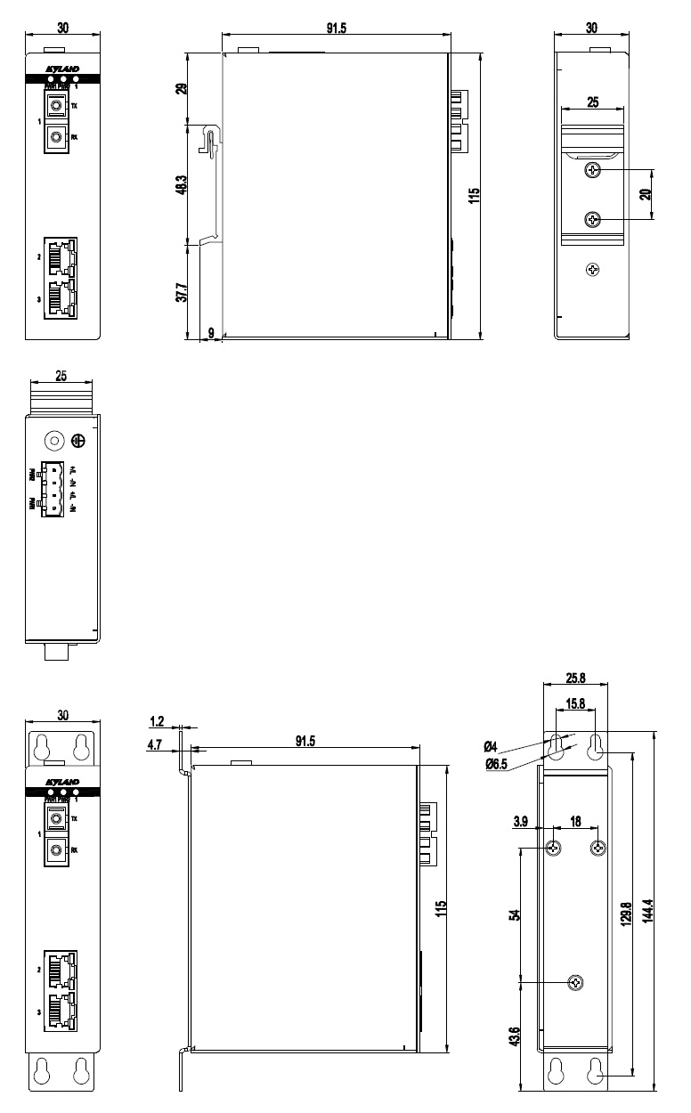| 機(jī)械結(jié)構(gòu) | 外殼 金屬材質(zhì) 散熱方式 自然冷卻,無風(fēng)扇 防護(hù)等級(jí) IP40 尺寸 30mm×115mm×91.5mm(W×H×D) 重量 0.4Kg 安裝方式 DIN卡軌式或壁掛式 |