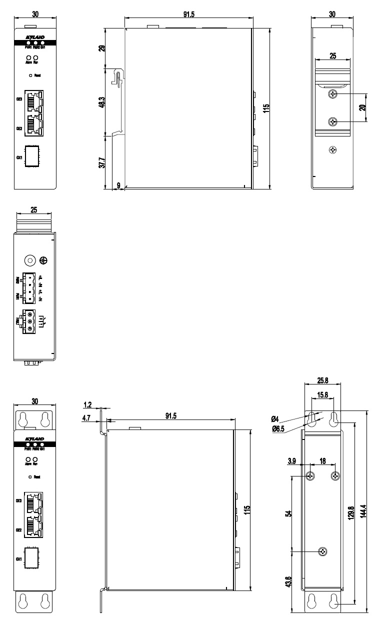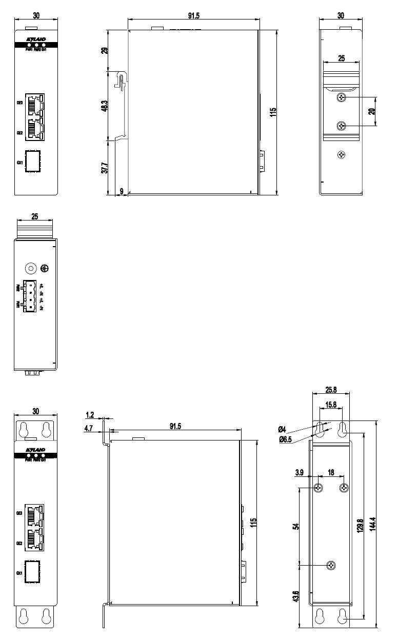 | 機(jī)械結(jié)構(gòu) | 外殼 金屬材質(zhì) 散熱方式 自然冷卻,無(wú)風(fēng)扇 防護(hù)等級(jí) IP40 尺寸 30mm×115mm×91.5mm(W×H×D) 重量 0.36kg 安裝方式 DIN卡軌式或壁掛式 |