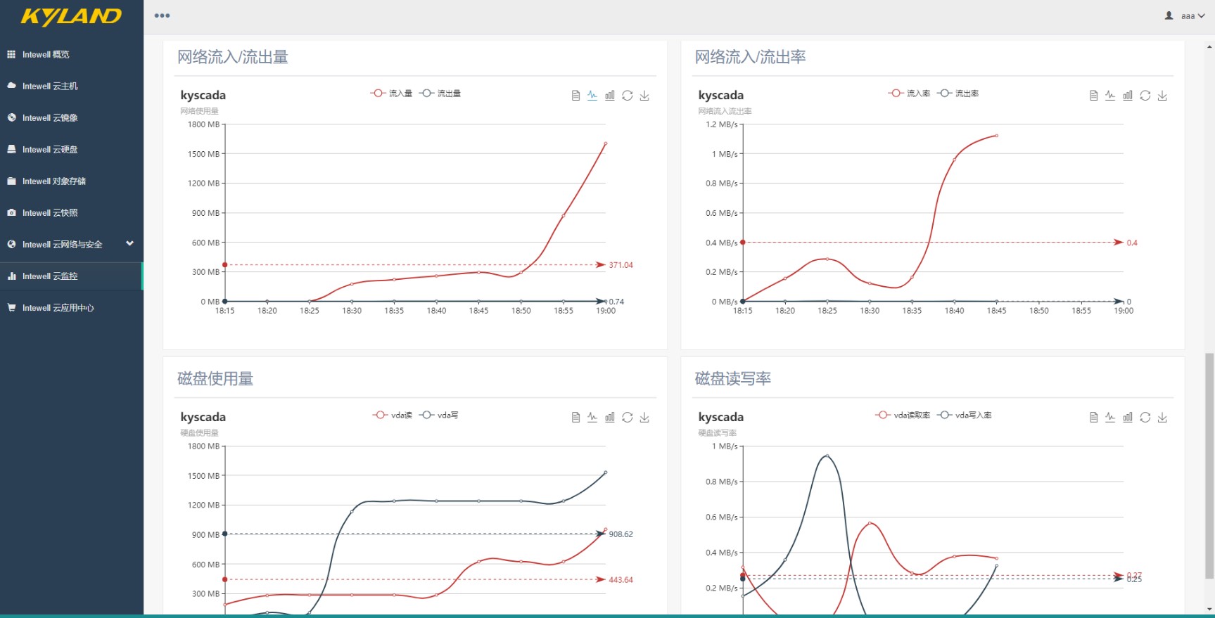| 云監控管理 | 支持對云主機CPU、內存、磁盤、網絡的監控。 支持對應用資源的監控及動態擴展 支持對應用特有的業務進行監控(應用自定義) 支持對應用的編排:單個應用啟、停和多個應用的編排 ![]() ![]() |