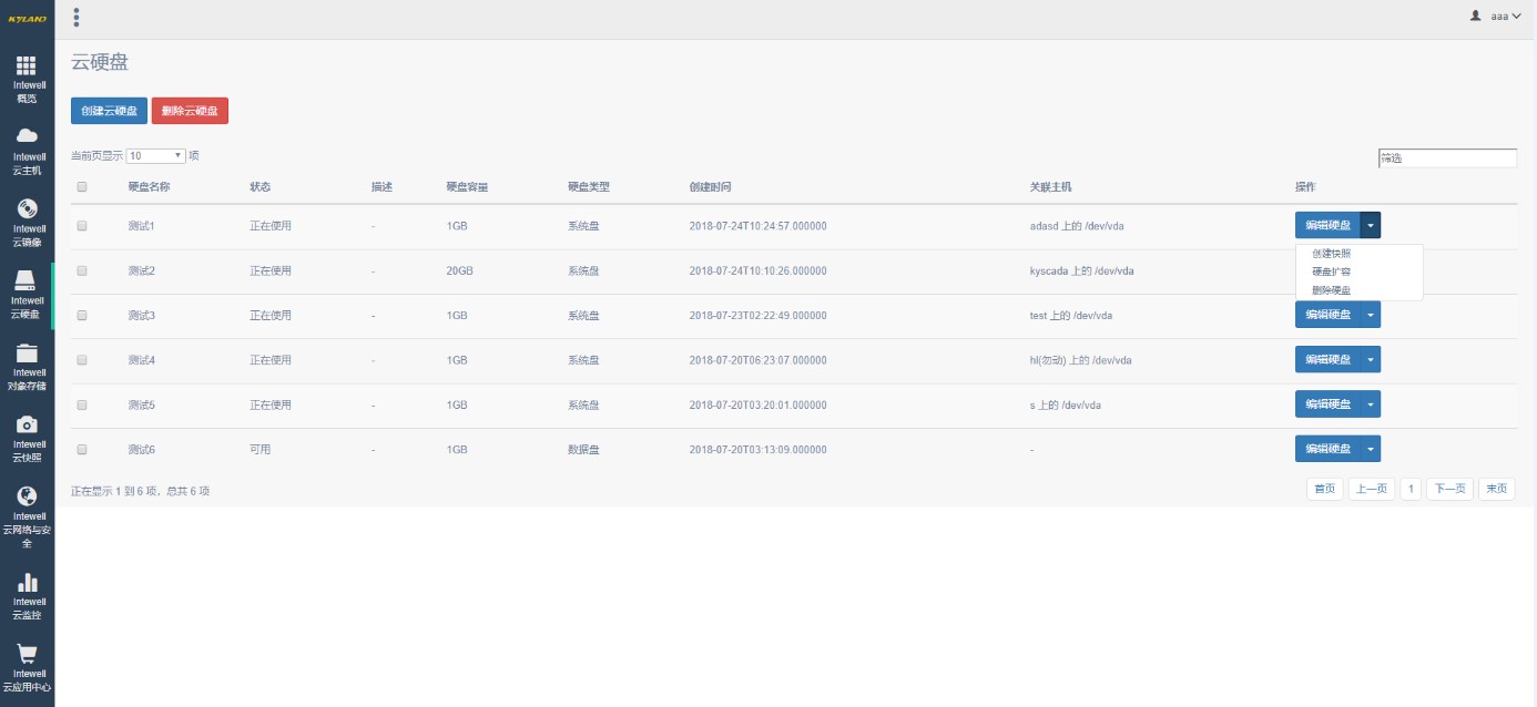 | 云硬盤 | 支持創建、刪除云硬盤 支持掛載云硬盤到云主機 支持云硬盤快照 支持云硬盤導出、備份、恢復 支持云硬盤擴容 支持云硬盤QoS 支持存儲高可用 ![]() |