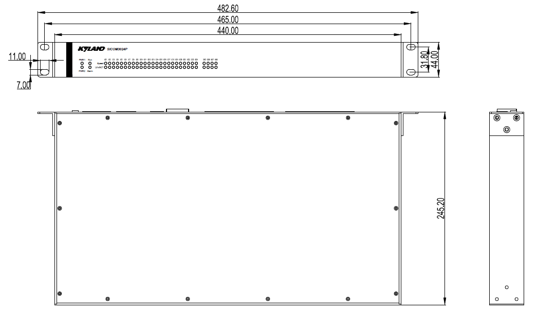 | 機械結構 | 外殼 金屬材質 散熱方式 自然冷卻,無風扇 防護等級 IP40 尺寸 482.6mm×44mm×245mm(W×H×D) 重量 4Kg 安裝方式 19英寸1U機架式 |