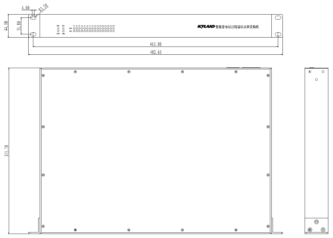 | 管理與維護 | 支持Console,WEB 管理方式 支持SNMPv1/v2c/v3,可通過Kyvision 集中管理 支持IEC61850 MMS 建模管理 支持CSD 離線配置 支持文件傳輸及軟件升級 支持IP/MAC沖突告警,失電告警,電源告警,溫度告警,端口LinkDown告警,環告警,CPU利用率告警,內存利用率告警,端口流量告警,CRC及丟包率告警,配置變更告警 支持端口鏡像 支持Syslog 支持LLDP 支持NTP,SNTP 支持延時累加 |